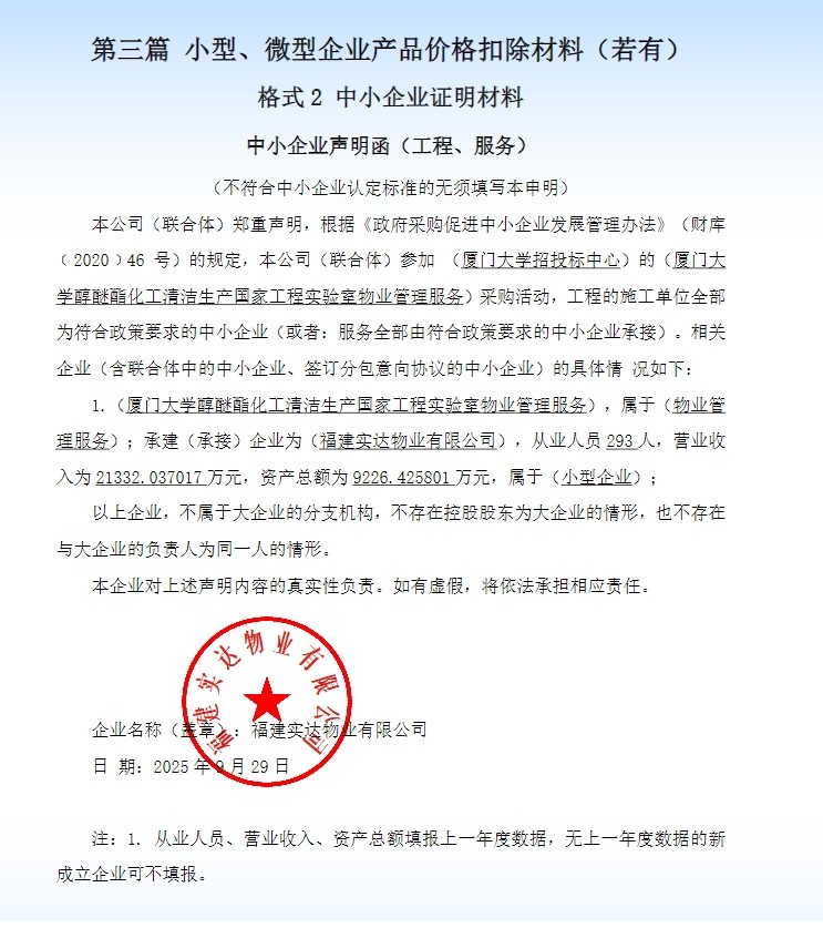 采购项目名称:厦门大学醇醚酯化工清洁生产国家工程实验室物业管理服务