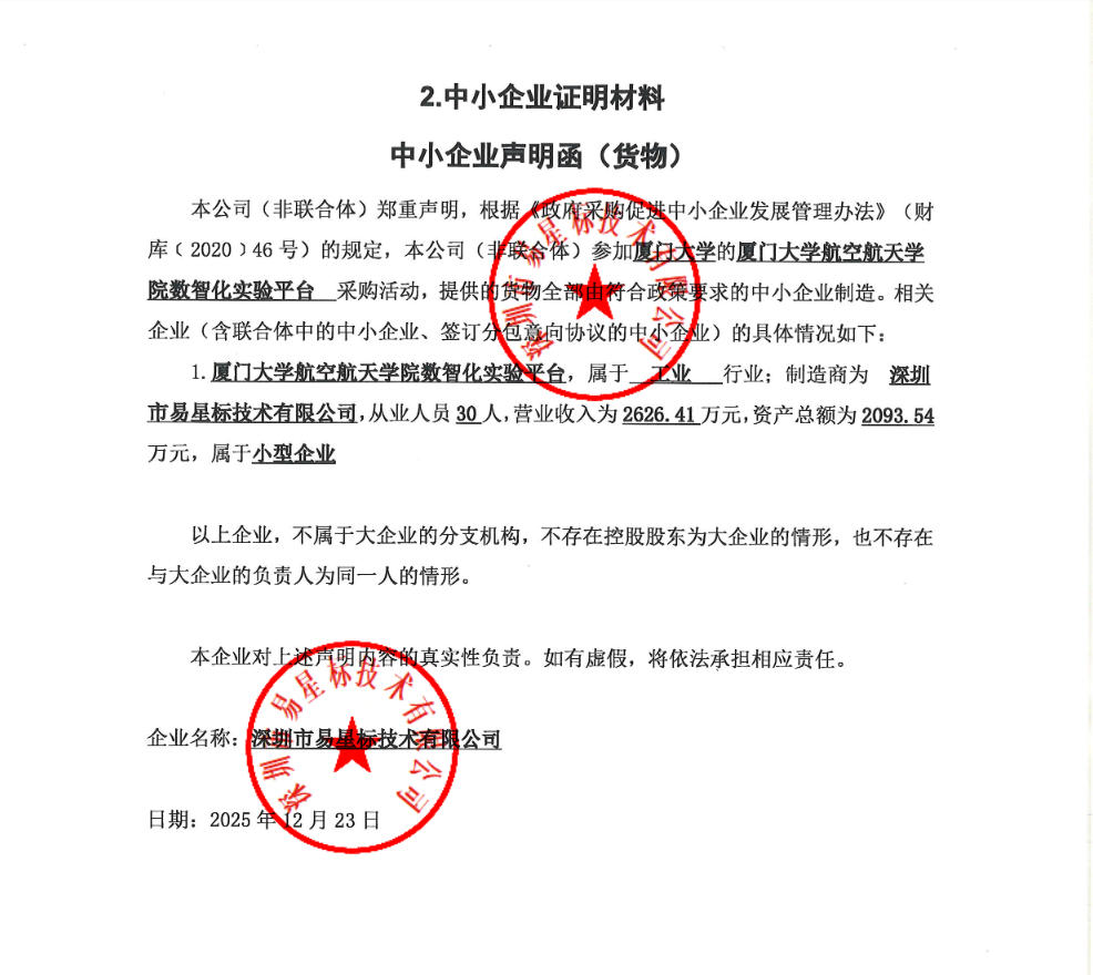 采购项目名称:厦门大学航空航天学院数智化实验平台